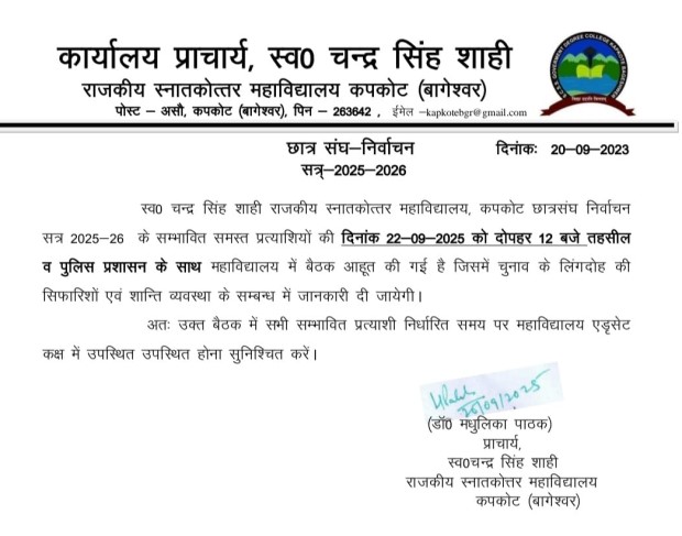 Swargiya Chandra Singh Shahi Government Post Graduate College Kapkote-Bageshwar, Uttarakhand (स्व० चंद्र सिंह शाही राजकीय स्नातकोत्तर महाविद्यालय कपकोट, बागेश्वर - उत्तराखंड)